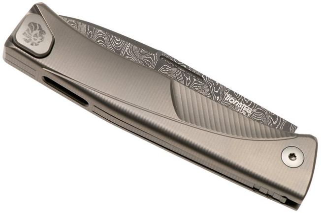 LionSteel Thrill TL-D-GY Damascus, Grey Titanium Integral Slipjoint