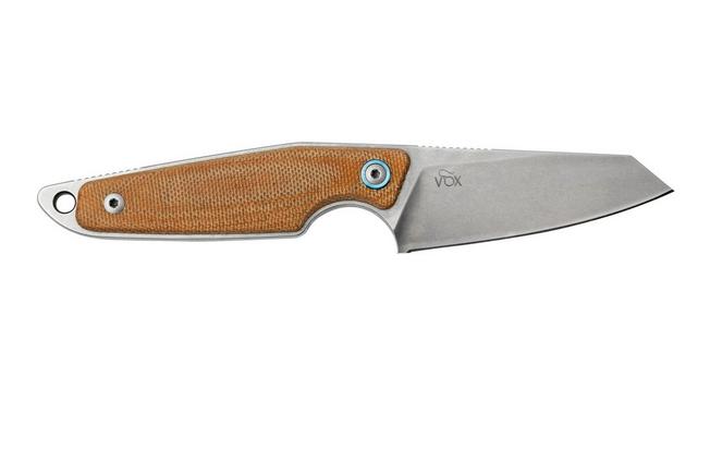 MKM Makro 2 Sheepfoot Stonewashed, Natural Canvas Micarta couteau fixe, Jesper Voxnaes design